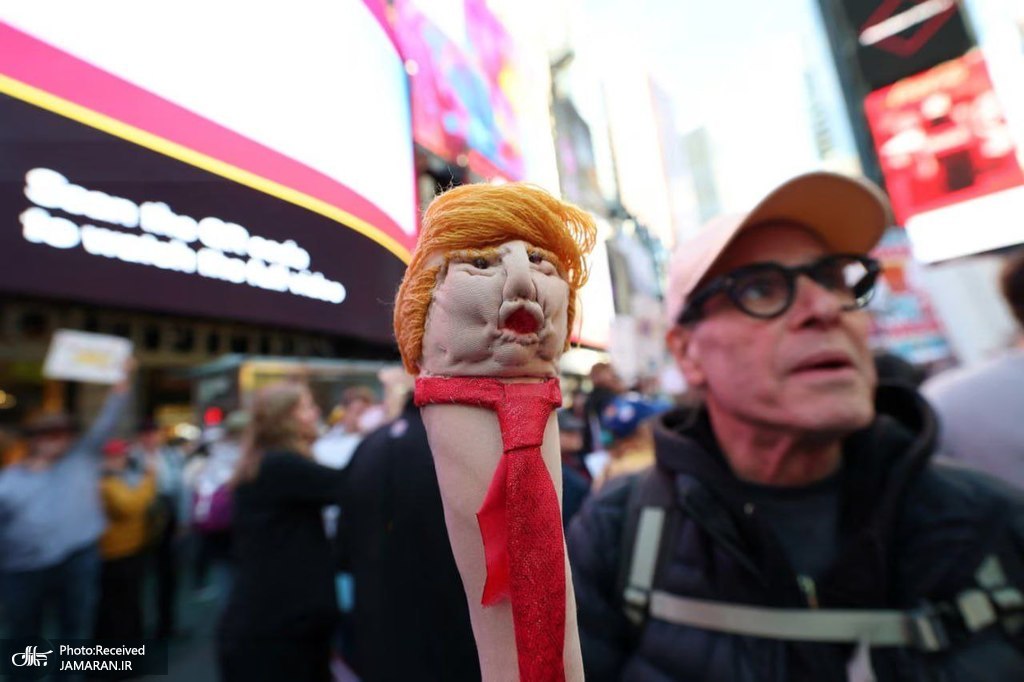 ترامپ بر سر مخالفانش در سراسر آمریکا مدفوع ریخت! ترامپ با انتشار ویدیویی ساختهشده با هوش مصنوعی در شبکه اجتماعی خود، سوار بر یک جت جنگنده بر سر معترضان چیزی شبیه گِل یا مدفوع ریخت. جیدی ونس، معاون ترامپ نیز ویدیویی ساختهشده با هوش مصنوعی منتشر کرد که در آن ترامپ تاجگذاری میکند.