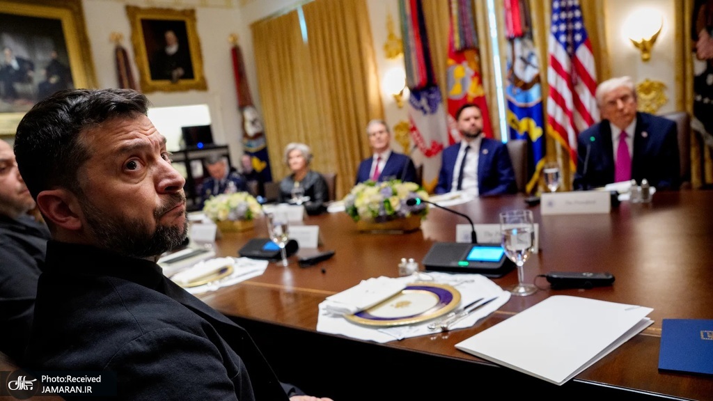 در ادامه این مطلب آمده است: در این جلسه که گاه به مشاجره و فریاد تبدیل شد، ترامپ نقشههای جبهه نبرد را کنار گذاشته و اصرار کرده که کییف باید کل منطقه دونباس را به روسیه واگذار کند. گفته میشود مواضع او در این نشست بازتاب مستقیمی از گفتوگوی تلفنیاش با پوتین در روز قبل بود. ترامپ پس از تماس با رئیسجمهور روسیه تغییر لحن چشمگیری داشت و در اظهاراتش تأکید کرد که جنگ باید در خطوط فعلی متوقف شود، «تا هر دو طرف پیروزی خود را اعلام کنند و تاریخ قضاوت کند». او در پستی در شبکه اجتماعی تروثسوشال نوشت: «خون کافی ریخته شده است. بگذار هر دو طرف مدعی پیروزی شوند؛ تاریخ تصمیم خواهد گرفت.»