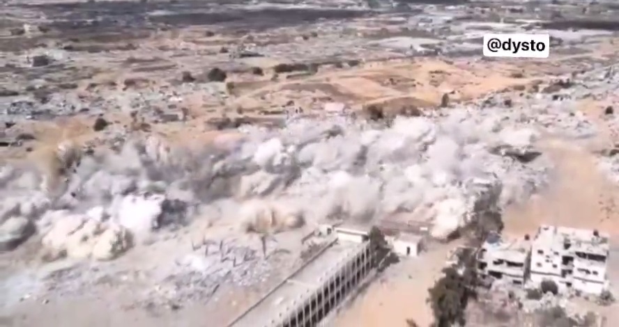 فیلمی که در فضای مجازی منتشر شده نشان میدهد که نظامیان رژیم صهیونیستی خانهها را در رفح واقع در جنوب غزه منفجر میکنند.
