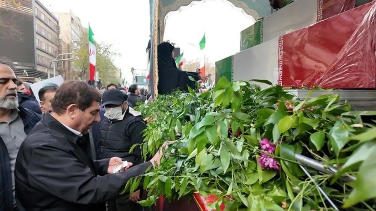 محمد مخبر عصر امروز در جمع پایتختنشینان در مراسم وداع با شهدای امنیت با تأکید بر مشی و مرام انقلاب اسلامی و مسیر نورانی ترسیمشدۀ آن گفت: جوانان عزیز ما در تمامی مقاطع همواره با هر سلیقهای آمادۀ فداکاری و ازخودگذشتگی برای کشورشان بودهاند و امروز مسئولیت ریخته شدن خون تکتک این جوانان عزیز و فرزندان رشید و قهرمان، برعهدۀ عاملان و آمران این فتنه یعنی ترامپ و نتانیاهو است.