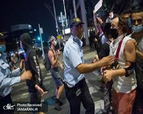 تظاهراتی در تلآویو در اعتراض به جنگ برگزار شد که با دخالت نیروهای پلیس رژیم صهیونیستی به خشونت کشیده شد.