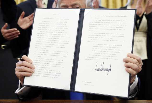 دونالد ترامپ روز جمعه دستوری را با عنوان "حفاظت از آمریکا در مقابل حملات تروریستی" امضا کرد که بر اساس آن ورود پناهجویان به آمریکا به مدت چهار ماه معلق و ورود شهروندان هفت کشور به آمریکا برای ۹۰ روز ممنوع شد. این تصمیم با واکنشهای داخلی و بینالمللی بسیاری مواجه شده است.
