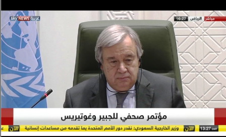 به گزارش جماران، گوترش در کنفرانس مطبوعاتی با عادل الجبیر وزیر خارجه عربستان، با اشاره به بحران های منطقه ای گفت: راه حل بحران سوریه، لیبی، عراق و یمن فقط سیاسی است.
