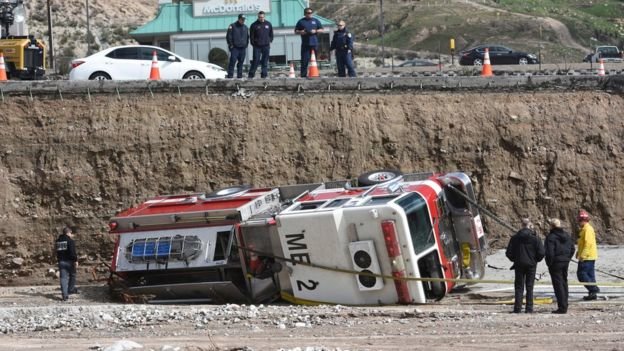 این حوادث طبیعی منجر به فرو ریختن زمین در شهر لس آنجلس و سقوط دو خودرو به داخل گودال شد.