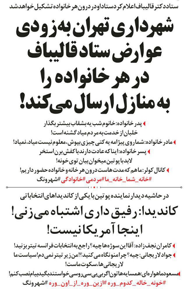 به گزارش جماران، روزنامه شهروند در ستون طنز امروزش به رفتارهای انتخاباتی دو نامزد ریاست جمهوری واکنش نشان داد.