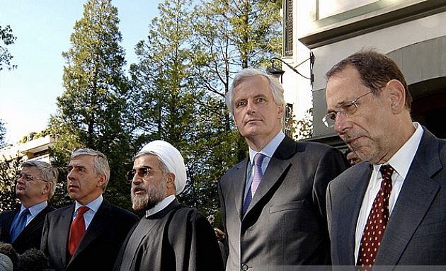 پاسخ سه کشور اروپایی و گزارش جلسه صبح آن روز به دفتر رهبر جمهوری اسلامی ایران ارسال شد و آیت الله خامنه ای ذیل آن نوشتند اگر سه کشور شرایط ایران را نپذیرفته اند، شما هم توافق را نپذیرید. روحانی همان شب به دفتر رهبری رفت و معلوم شد که خاتمی رئیس جمهور و اکبر هاشمی رفسنجانی رئیس مجمع تشخیص مصلحت نظام هم دعوت شده اند تا با حضور روحانی و اصغر حجازی، از مسئولان دفتر رهبری، در جلسه ای شرکت کنند. آیت الله خامنه ای در این جلسه گفت که به دو دلیل با توافق پاریس مخالف است: یکی به خاطر نامه آقازاده، رئیس سازمان انرژی اتمی ایران که در آن نوشته بود اگر توافق پاریس امضا شود، کلیه فعالیت هایی که در زیرزمین نطنز وجود دارد باید تعطیل شود و چند تن کیک زرد داخل دستگاه های UCF اصفهان فاسد می شود، این سازمان به تعدادی سانتریفیوژ (۲۰ عدد) نیاز دارد تا با آن ها تست انجام دهد تا اشکالات برطرف شود در حالی که آژانس تاکید داشت در صورت امضای توافق پاریس باید کلیه سانتریفیوژهای ایران پلمپ شود. دلیل دوم مخالفت رهبر ایران این بود که اگر در ادامه کار احساس شد مذاکرات به نتیجه نمی رسد، چطور می شود این توافق را کنار گذاشت؟