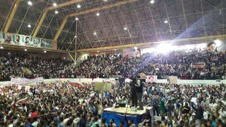 هنگام ورود حجت الاسلام رئیسی به این سالن ورزشی ، مردم با سردادن شعارهای «حیدر حیدر» و «شعار هر سمنانی رای به رئیسی» از این نامزد انتخابات ریاست جمهوری استقبال کردند.