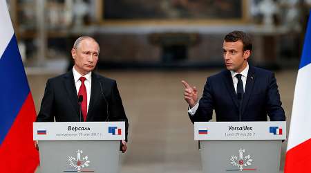 ولادیمیر پوتین رئیس جمهوری روسیه و امانوئل مکرون رئیس جمهوری فرانسه پس از دیدار و گفت و گوی چندساعته در کاخ ورسای پاریس، کنفرانس مشترک خبری برگزار کردند.