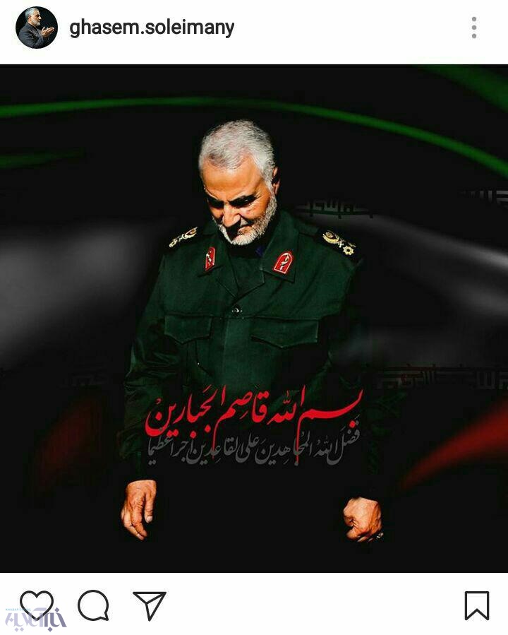 به گزارش جماران، صفحه اینستاگرام منتسب به سردار قاسم سلیمانی در  واکنش به حادثه تروریستی دیروز تهران نوشت: بسم الله القاصم الجبارین: به نام خداوند درهم شکننده ستمگران.