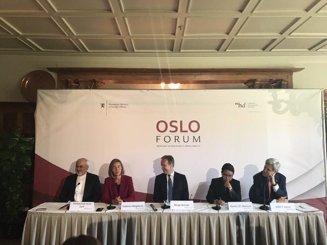 مجمع اسلو با حضور ظریف، کری، موگرینی و وزیران خارجه اندونزی و نروژ آغاز شد.