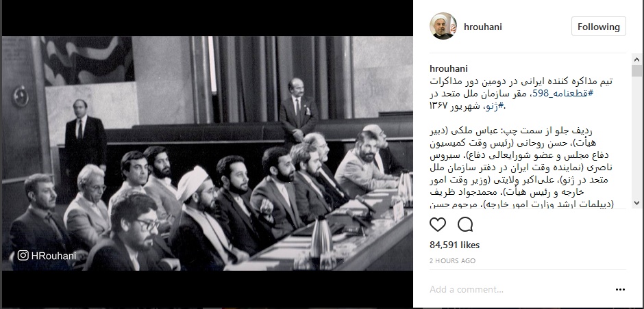 رییس جمهور در صفحه اینستاگرام خود به مناسبت ۲۷ تیرماه سالگرد پذیرش قطعنامه 598، تصویری از مقر سازمان ملل متحد در ژنو، منتشر کرد.