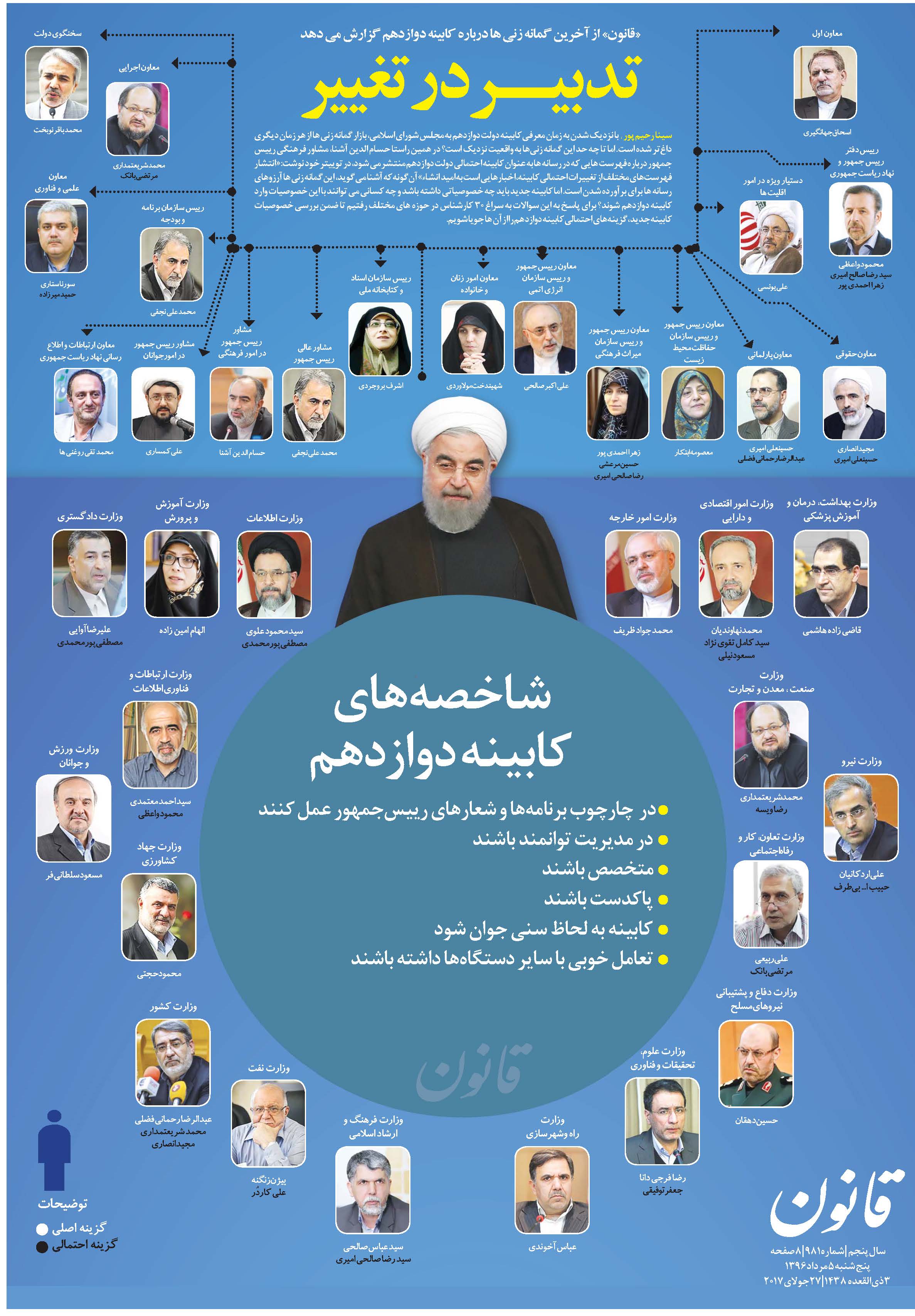 به گزارش جماران؛ با نزدیک شدن به زمان معرفی کابینه دولت دوازدهم به مجلس شورای اسلامی، بازار گمانه زنی ها از هر زمان دیگری داغتر شده است. اما تا چه حد این گمانه زنیها به واقعیت نزدیک است؟ در همین راستا حسام الدین آشنا، مشاور فرهنگی رییس جمهور درباره فهرست هایی که در رسانه ها به عنوان کابینه احتمالی دولت دوازدهم منتشر می شود، در توییتر خود نوشت:« انتشار فهرستهای مختلف از تغییرات احتمالی کابینه، اخبارهایی است به امید انشاء» آن گونه که آشنا می گوید، این گمانه زنی ها آرزوهای رسانه ها برای برآورده شدن است. اما کابینه جدید باید چه خصوصیاتی داشته باشد و چه کسانی می توانند با این خصوصیات وارد کابینه دوازدهم شوند؟ برای پاسخ به این سوالات به سراغ 30 کارشناس در حوزه های مختلف رفتیم تا ضمن بررسی خصوصیات کابینه جدید، گزینههای احتمالی کابینه دوازدهم را از آن ها جویا شویم.