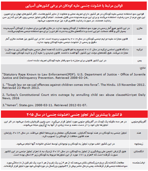 وقوع تجاوز به کودکان در پیشرفتهترین اقتصاد جهان دور از ذهن است اما در ایالت متحده از هر ٥ کودک، یک نفر در مدرسه یا خیابان مورد تجاوز قرار گرفته است و در این کشور سالانه بیش از ٢٠هزار آزار و تجاوز به کودک رخ میدهد.
