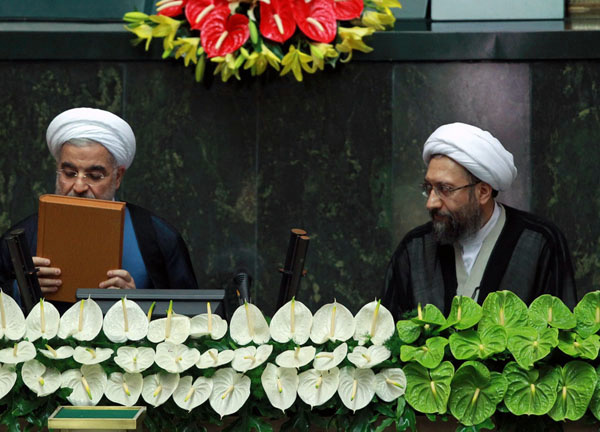در وهله نخست، طبق اصل121 قانون اساسی، رئیس جمهور در مجلس شورای اسلامی درجلسهای که با حضور رئیس قوه قضائیه و اعضای شورای نگهبان تشکیل می شود، سوگند یاد میکند و سوگند نامهای را امضا مینماید. مطابق این اصل، در واقع سوگند ریاست جمهوری صرفا بدین معناست که منتخب ملت در مقابل قوای دیگر سوگند یاد میکند که وظایف خود را انجام دهد.
