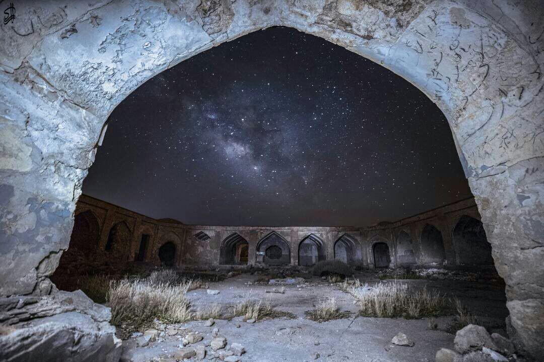 به گزارش جماران؛ در این تصویر کهکشان راه شیری بر فراز کاروانسرای عباسی، لارستان بزرگ دیده می شود