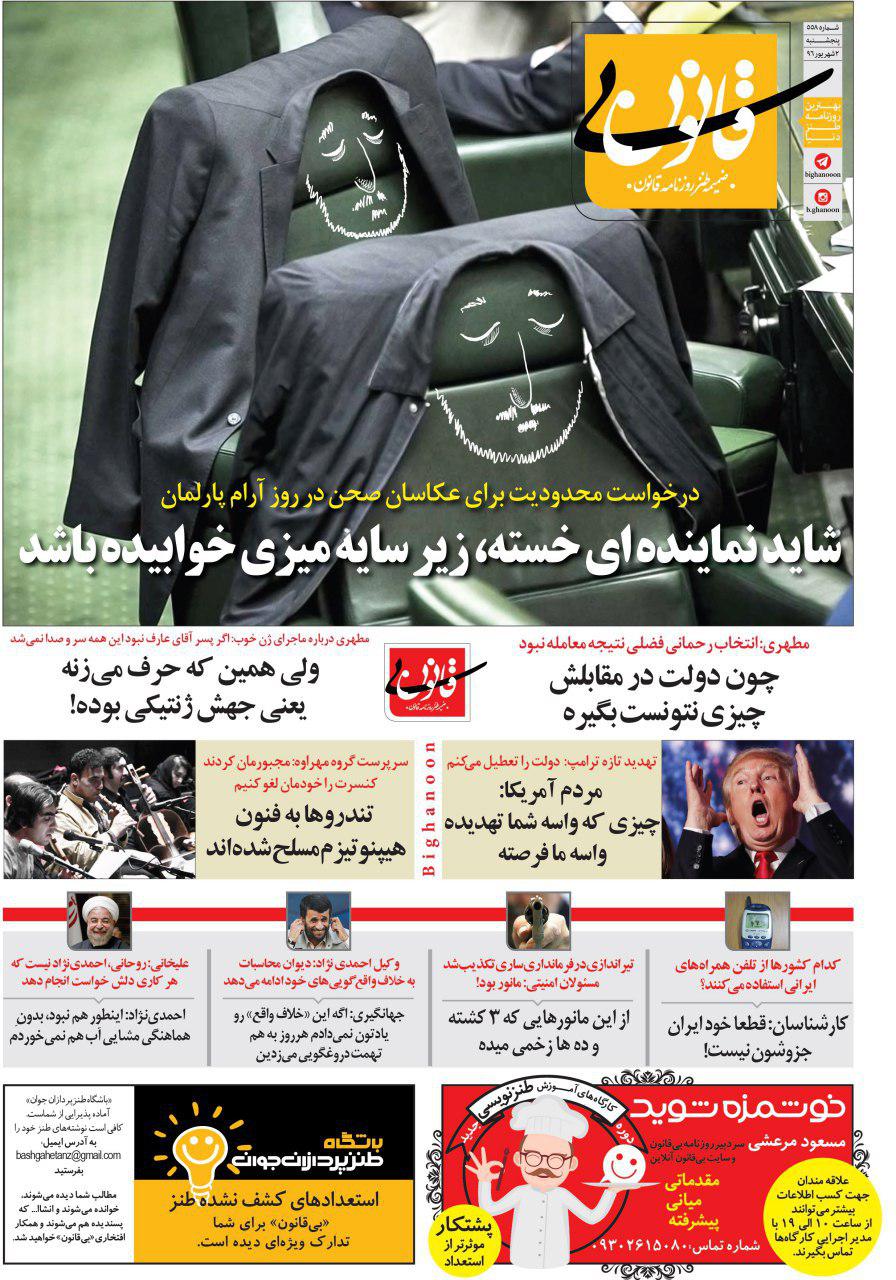 به گزارش جماران؛ در پی درخواست برخی نمایندگان برای محدودیت حضور عکاسان در صحن مجلس، ضمیمه طنز روزنامه قانون به این سخنان واکنش نشان داده است