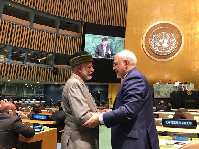 به گزارش جماران؛ محمدجواد ظریف پیش از سخنرانی رئیسجمهور در مجمع عمومی سازمان ملل با یوسف بن علوی دیداری کوتاه داشت.