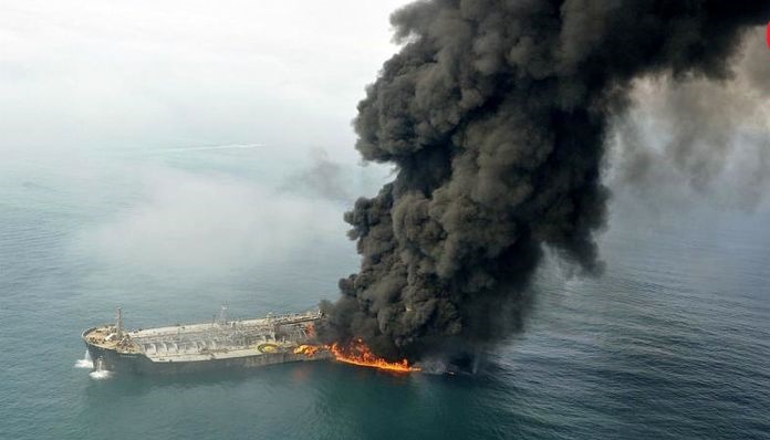 کشتی سانچی روز ۲۵ آذر ماه ۱۳۹۶ بندر عسلویه را با محموله حدود یک میلیون بشکه میعانات گازی به مقصد یکی از بندرهای کره جنوبی ترک کرد و روز شنبه ۱۶ دیماه ۱۳۹۶ ساعت ۸ شب به وقت محلی با یک کشتی فلهبر تحت پرچم هنگکنگ و با خدمه چینی برخورد کرد.