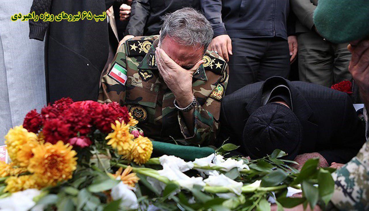 پایگاه خبری جماران؛ تصویری از امیر سرتیپ کیومرث حیدری فرمانده نیروی زمینی ارتش درحالی که بر پیکر شهید محسن برزگر زاده می گرید.