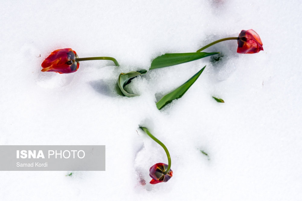 بزرگترین باغ لاله ایران زیر برف رفت.
