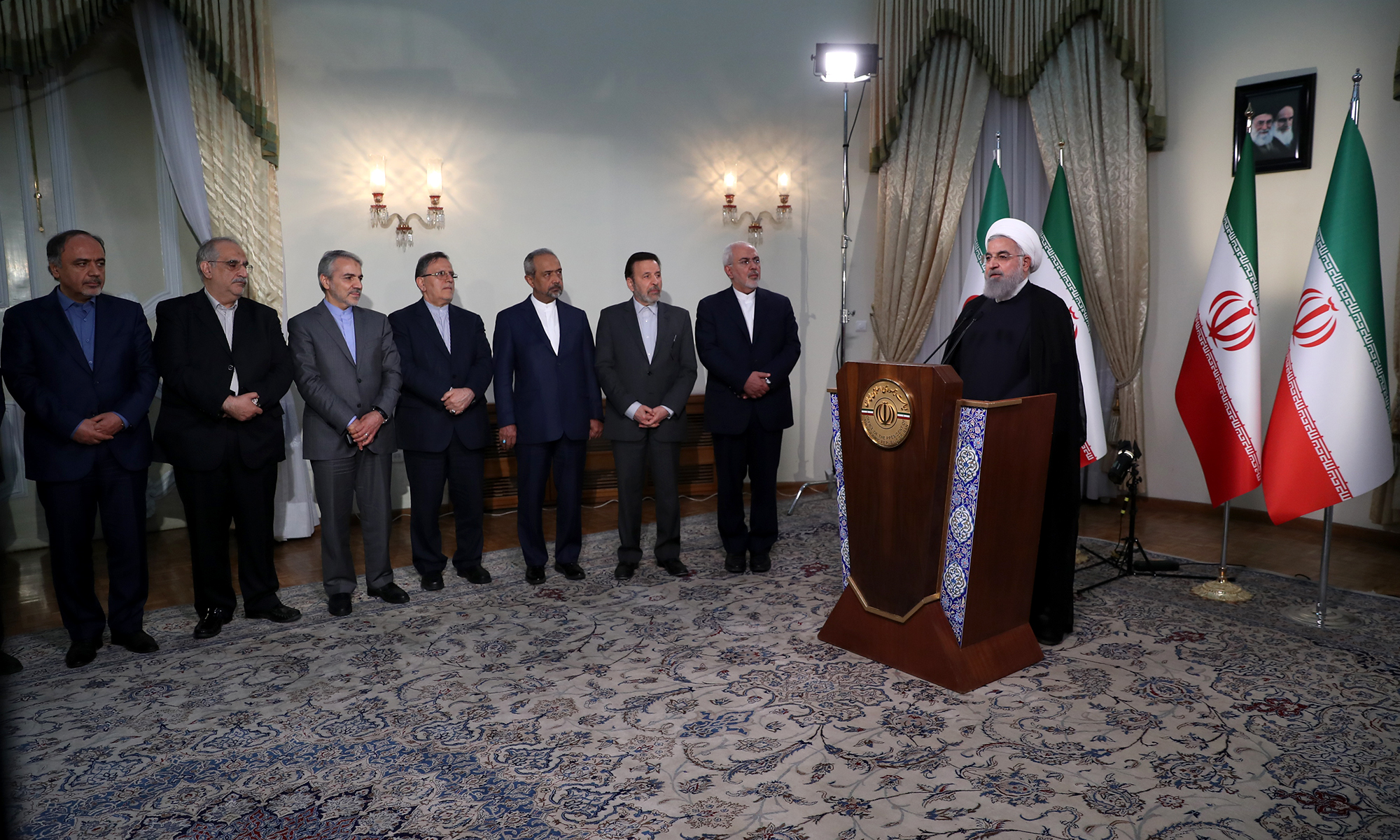 رئیس جمهور با یادآوری اینکه برجام توافق بین ایران و آمریکا نبوده که آمریکا بخواهد اعلام کند از این توافق خارج می‌شود، گفت: برجام یک توافق چند جانبه و یک توافق بین‌المللی بوده، برجام توافقی است که مورد تأیید شورای امنیت سازمان ملل و قطعنامه 2231 قرار گرفته است. بنابراین آمریکا امشب رسماً اعلام کرد که به تعهدات بین‌المللی توجهی ندارد.