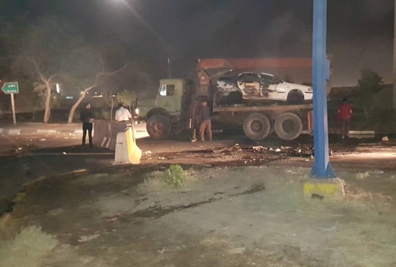 این افراد یک خودرو پارک شده در خیابان را که گفته می شود مربوط به پلیس است را آتش زدند که توسط ماموران آتش نشانی خاموش شد.