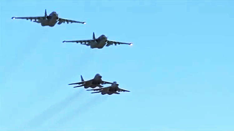در بیانیه وزارت دفاع روسیه آمده است که مواضع جبهه النصره به دور از روستاها و شهرها بمباران شد.