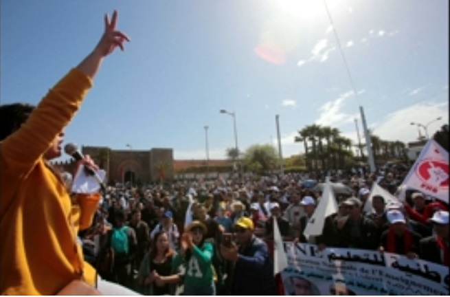 معلم ها تظاهرات مسالمت آمیز خود را از رو به روی ساختمان وزارت آموزش و پرورش در رباط به سمت میدان رو به روی پارلمان این کشور آغاز کردند؛ همان جایی که چند ساعت پیش پلیس دخالت کرده و آنها را سرکوب کرده بود.