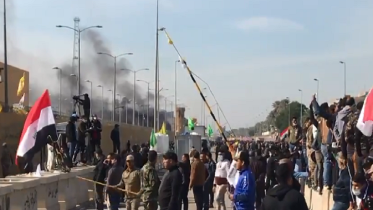 روز گذشته هزاران معترض عراقی خشمگین در اعتراض به حمله هوایی آمریکا به مقر الحشد الشعبی در استان الانبار و شهارت شماری از نیروهای الحشد الشعبی، پس از مراسم تشییع این شهدا به سفارت آمریکا در منطقه «الخضرا» در بغداد حمله کردند و بخش هایی از آن را به آتش کشیدند. معترضان همچنین اعلام کردند که  برای اخراج آمریکایی ها از این کشور در مقابل سفارت آمریکا تحصن باز خواهند کرد.