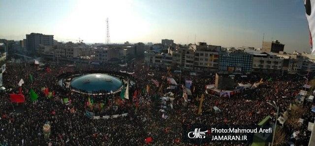 جمعیت شرکت کننده در این مراسم با سردادن شعارهایی بر ضد آمریکا ، جنایت این کشور را محکوم کردند و احساس حزن و اندوه خود را برای از دست دادن قاسم سلیمانی ابراز داشتند.