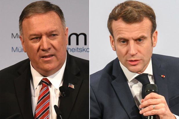 برخلاف پومپئو سخنان امانوئل ماکرون رئیس جمهور فرانسه با اظهارات روز پیش همتای آلمانی او همسوئی داشت و بلافاصله پس از سخنرانی وزیر خارجه آمریکا، رئیس جمهور فرانسه در یک نشست اظهار نظر او را رد کرد.