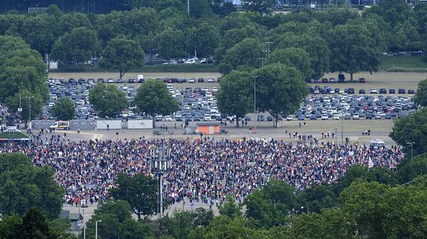 معترضان همچنین بدون در نظر گرفتن فاصله گذاری اجتماعی و در کنار یکدیگر پلاکارد در دست گرفتند و سیاستمداران را به وحشت پراکنی و امنیتی کردن فضای کشور متهم کردند. گزارشهای حاکی از آن است هرچند نیروهای پلیس تلاش داشتند با دستگیری گروهی از معترضان به این تجمع پایان دهد، اما در نهایت نیروهای امنیتی توفیقی در امر به دست نیاوردند.