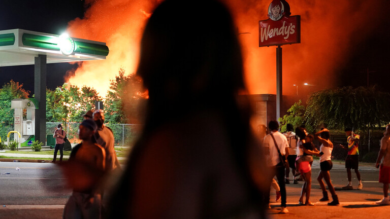 با فرا رسیدن شب معترضان در مرکز ایالت «جورجیا» تجمع کردند و رستورانی که از نزدیکی آن پلیس به سمت جوان سیاه پوست تیراندازی کرد را به آتش کشیدند. آتش سوزی پیش از رسیدن آتش نشانی به همراه نیروهای پلیس به مدت 45 دقیقه طول کشید و رستوران تبدیل به تلی از خاکستر شد.