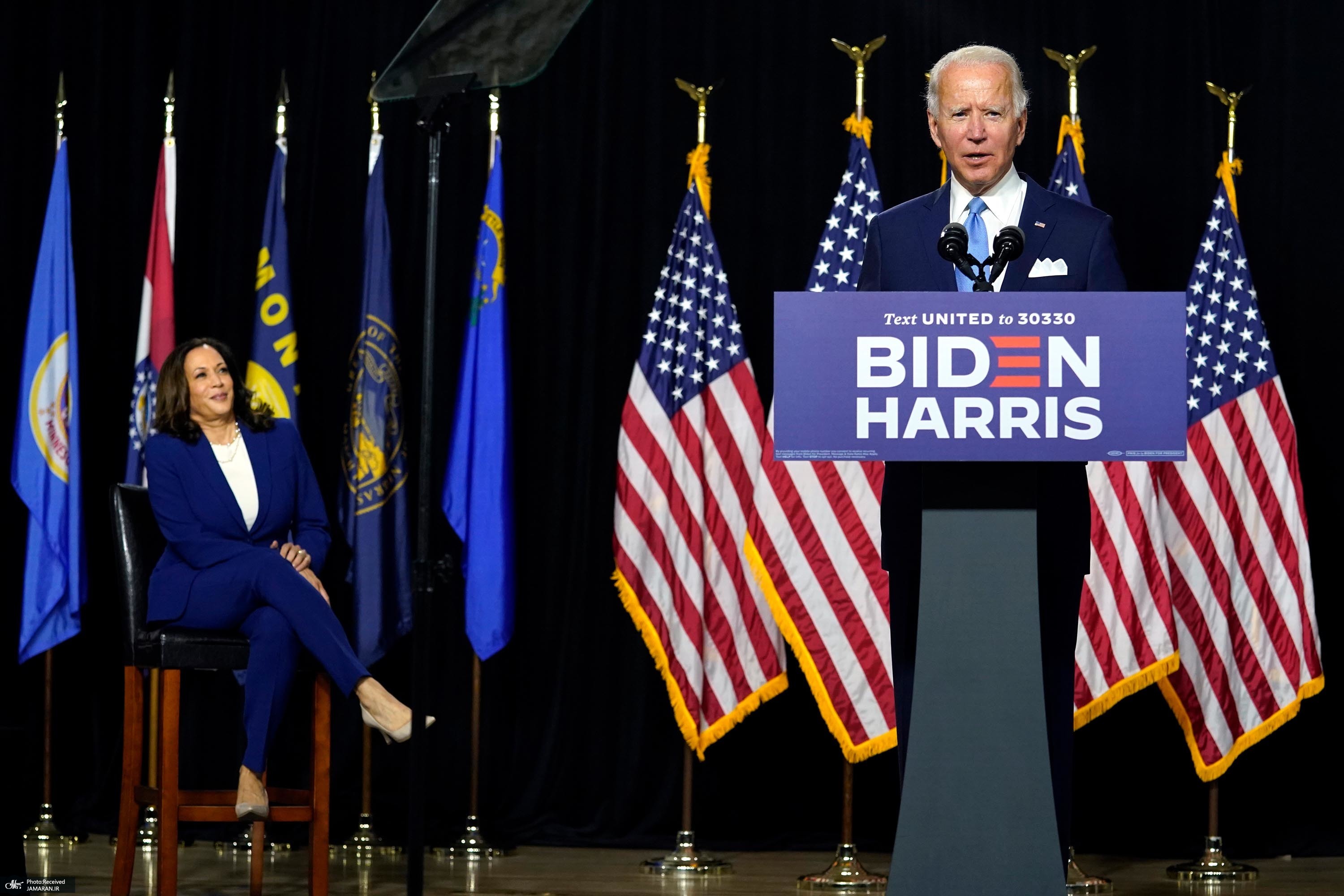 کاندیدای دموکرات ها در انتخابات ریاست جمهوری آمریکا و یار انتخاباتی وی در نخستین نشست مطبوعاتی مشترک خود در مدرسه ای در ایالت «دلاور» حاضر شدند.