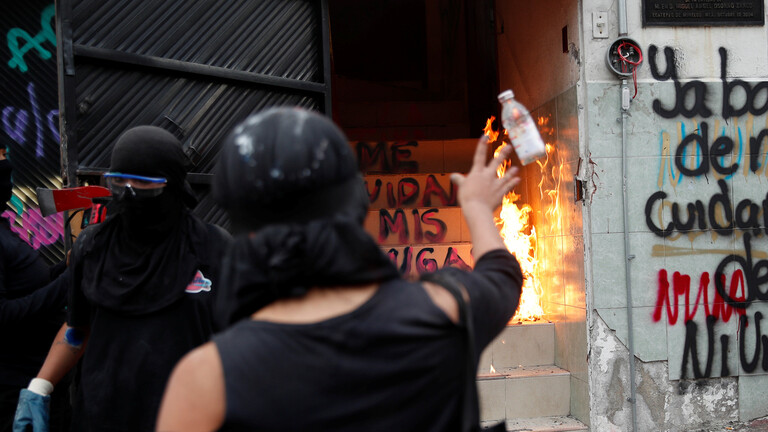 زنان فعان مکزیکی در اعتراض به خشونت علیه زنان در این کشور یک ساختمان دولتی را به آتش کشیدند.