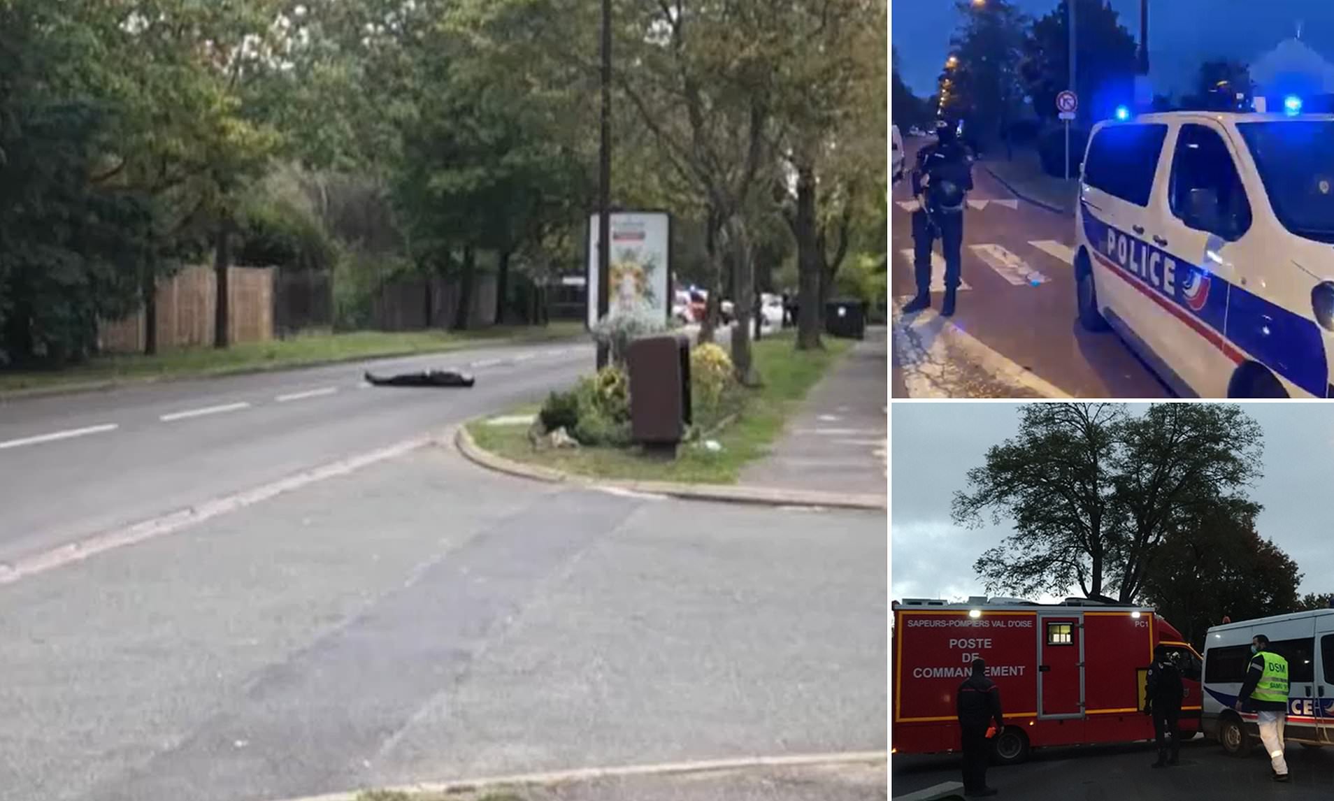 رئیس جمهور فرانسه در مدرسه محل تدریس یک معلم تاریخ که ساعاتی پیش از آن سر بریده شده بود، حضور یافت. این حادثه در شهر کوچک «کونفلان سنت اونورین» در منطقه «ایولین» در نزدیکی پاریس روی داد.