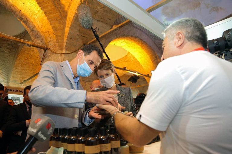 به گزارش جماران به نقل از خبرگزاری سانا، بشار اسد رئیس جمهور سوریه و «اسماء اسد» همسرش از نمایشگاه «تولید کنندگان 2020» در دمشق با مشارکت تولید کنندگانی از استان حلب از جمله کسانی که تاسیسات ، کارگاه ها و مغازه های شان در جریان جنگ آسیب دیده بود و به روند فعالیت های قبلی وتولید بازگشته اند بازدید کردند.