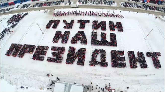 هواداران پوتین همچنین داخل برخی از کارخانه ها با در دست داشتن پرچم های روسیه و با لباس کار طرفداری خود را از پوتین رئیس جمهور این کشور ابراز کردند.