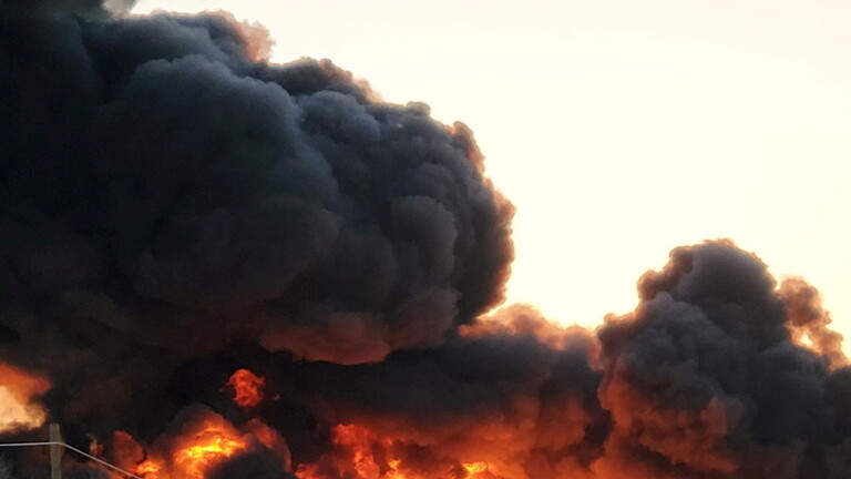 برخورد یک تریلی با قطار حامل سوخت و ذغال باعث وقوع انفجار و آتش سوزی بزرگی در تگزاس آمریکا شد.