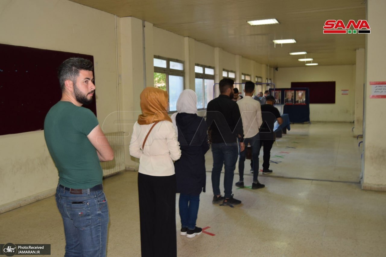 برخی تصاویر منتشر شده نشان می دهد در دانشکده هنر دانشگاه دمشق صدها دانشجو برای رای دادن صف کشیده اند و چندین اتوبوس در بیرون پارک کرده اند.
