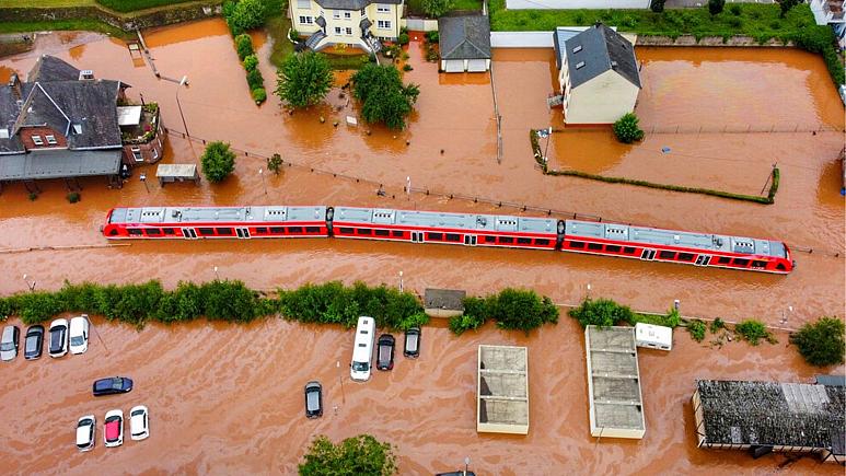 این در حالی است که با ادامه بارش باران در مناطقی از غرب آلمان، سطح آب رودخانه راین و رودهای منشعب از آن همچنان به صورت خطرناکی در حال بالا آمدن است. در تصاویر منتشر شده خیابانها و خانهها زیر آب دیده میشوند، در شرایطی که خودروها در آب غوطهور هستند و درختان از ریشه درآمدهاند.