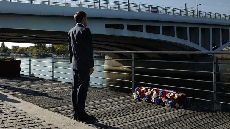 ماکرون روز شنبه و یک روز پیش از سالگرد رسمی در مراسم یادبودی که در پارکی در حومه پاریس به این منظور برگزار شده بود شرکت کرد. وی اذعان کرد که دهها معترض کشته شده و اجساد آنها به رودخانه سن انداخته شده است.