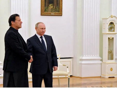 از زمان به قدرت رسیدن در سال 2018،سخنان خان بیشتر ضد آمریکایی شده است و او تمایل خود را برای نزدیک شدن به چین و اخیراً روسیه ابراز کرد - خان در 24 فوریه، روز آغاز تهاجم به اوکراین، با رئیس جمهور ولادیمیر پوتین گفتگو کرد.