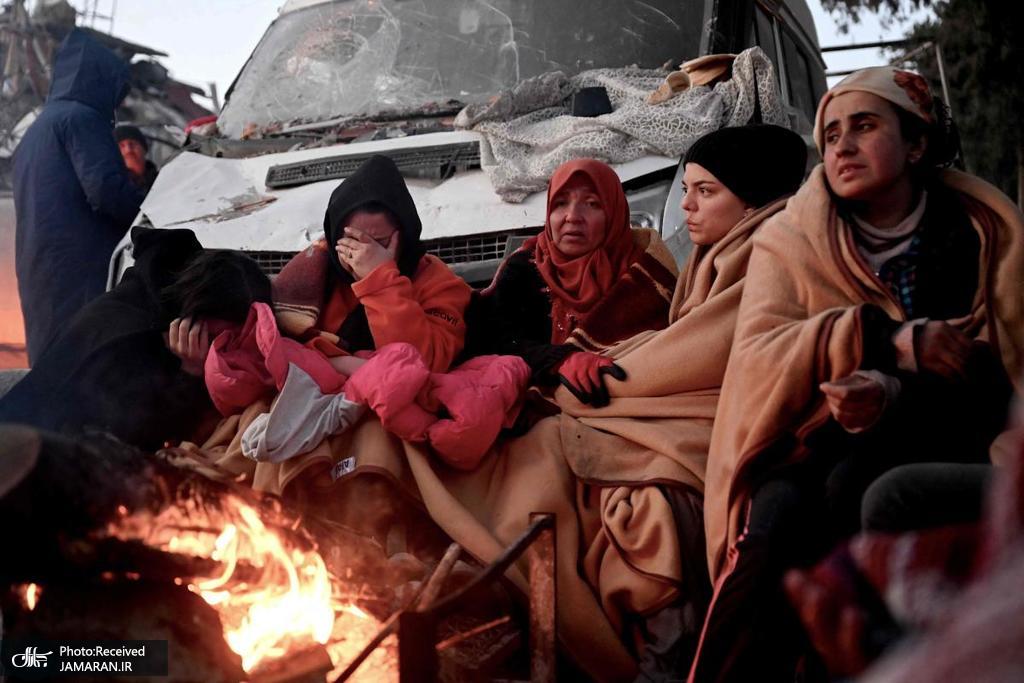 قهرمان مرعش، ترکیه/ مردم زلزله زده، در میان آوار ساختمان های فرو ریخته در نزدیک آتش نشسته اند. عکس: AFP