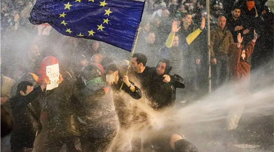 این تجمع اعتراضی که با خشم فزاینده ناشی از تصویب لایحه جنجالی «عوامل خارجی» همراه شده بود خیلی زود به خشونت کشیده شد و پلیس برای متفرق کردن تظاهرکنندگان در تفلیس از گاز اشکآور و خودروهای آبپاش استفاده کرد.