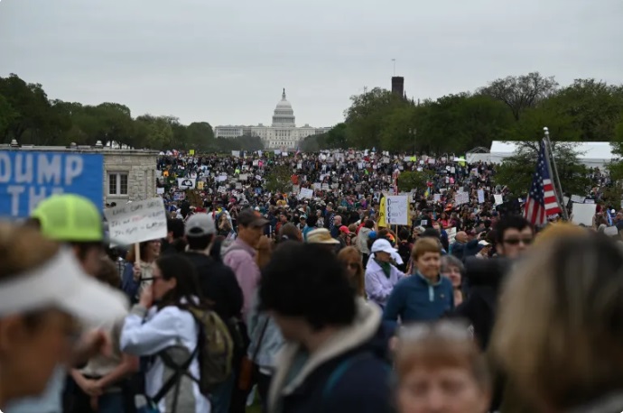 یورنیوز نیز گزارش داد که صدها هزار نفر روز شنبه پنجم آوریل در اعتراض به سیاستها و عملکرد دونالد ترامپ، رئیسجمهوری آمریکا، و ایلان ماسک، رئیس اداره بهرهوری دولت آمریکا، در سراسر ایالات متحده به خیابانها آمدند.