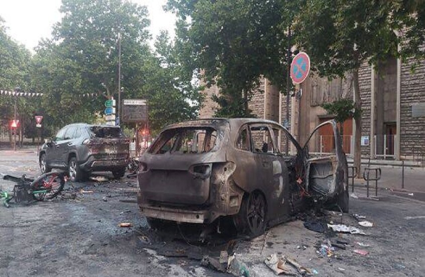 ویدیوهایی از محل وقوع حوادث، سوختن خودروهای غیرنظامی و تخریب در تأسیسات عمومی را نشان میدهد، در حالی که برخی از اخلالگران پرچمهایی از کشورهای عربی را بدون توضیح انگیزههای آن برافراشتند.