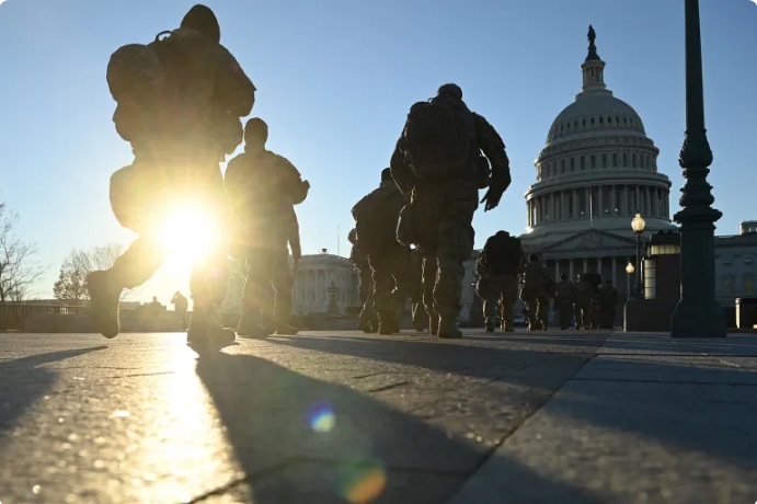 در این گزارش آمده است که قانون آمریکا معروف به "قانون پوسی کمیتاتوس" معمولاً استفاده از ارتش در اجرای قانون در داخل کشور را ممنوع میکند، مگر در موارد خاص و قانونی نادر، اما ترامپ در دوره دوم ریاست جمهوری خود از گارد ملی و ارتش در مناسبتهای مختلف استفاده کرد، از جمله اعزام تفنگداران دریایی و نیروهای گارد ملی به لس آنجلس برای مقابله با اعتراضات محکومیت بازداشت مهاجران و استفاده از هواپیماهای نظامی برای انتقال مهاجران بازداشت شده به خارج از کشور.