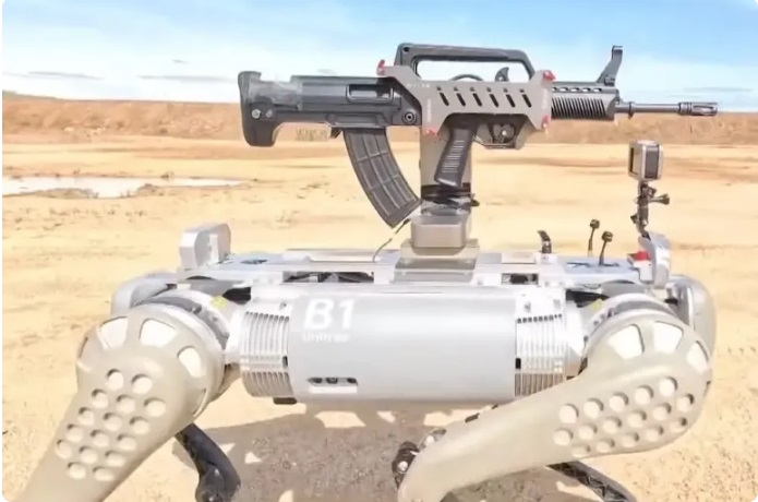 سگهای چینی پس از آنکه رادیو و تلویزیون مرکزی چین فیلمی از رباتهای مسلح چهارپا در جریان رزمایشهای نظامی اخیر با کامبوج پخش کرد، توجه افکار عمومی جهانی را به خود جلب کردند. در این ویدئو، یک ربات شبیه سگ با وزن تقریبی 15 کیلوگرم نشان داده میشود که یک تفنگ خودکار حمل میکند و شلیک میکند. در همین ویدئو، یک سخنگوی ارتش چین گفت که این ربات، که میتواند بسیاری از وظایف را به طور مستقل انجام دهد، میتواند به عنوان "عضو جدیدی در عملیاتهای رزمی شهری ما" عمل کند.