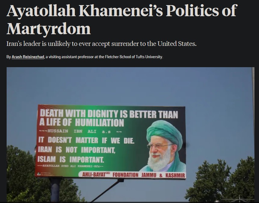به گزارش سرویس بین‌الملل جماران، آرش رییسی‌نژاد، استاد ایرانی روابط بین‌الملل و پژوهشگر مدعو به قلم آرش رئیسی نژاد، استاد مهمان در مدرسه فلچر دانشگاه تافتس،  در یادداشتی برای فارن‌پالیسی نوشت:  در واشنگتن، یک فرض آشنا همچنان پابرجا است: اینکه فشار، تحریم‌های کافی، انزوای حداکثری و مخاطرات نظامی، سرانجام رهبر ایران، آیت‌الله علی خامنه‌ای را مجبور به عقب‌نشینی خواهد کرد. شاید نه بلافاصله، شاید نه علنی، اما در نهایت این اتفاق خواهد افتاد. این فرض، شناخت درستی از مردی که در مرکز سیستم سیاسی ایران قرار دارد، ندارد.